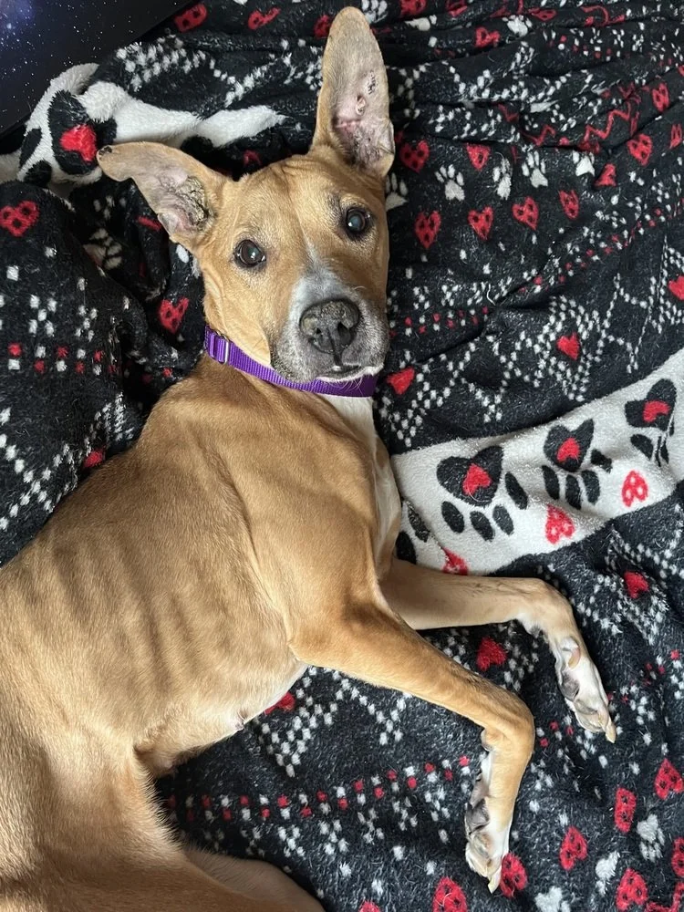 Despite everything she’s endured, PennyLou is gentle, affectionate, and full of wiggles! She loves kids, cats, and other dogs. She is, simply put, a perfect girl who has lived far less than a perfect life.